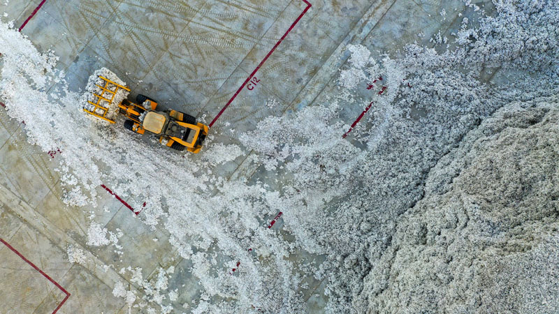 新疆沙雅县一处棉花收购企业在进行生产。(图片来源:新华社)