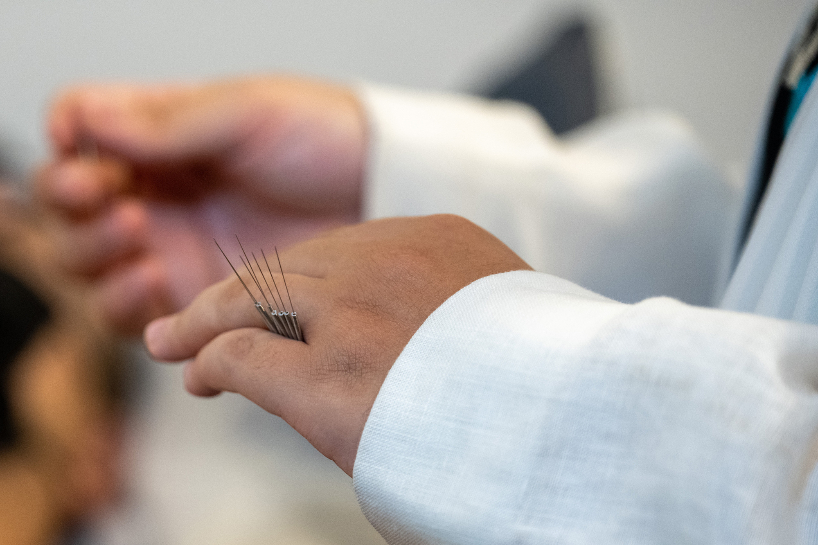 施皮格尔曼是一名搏击爱好者,但肩部的积年伤病严重影响他的发挥。在多年前前往中国看望妹妹的时候,通过针灸、站桩辅以西医治疗,施皮格尔曼的肩伤逐渐痊愈,他从此对中医产生了浓厚兴趣,并从此与中医结缘。图为丹尼尔·施皮格尔曼在悉尼的针灸诊所为病人针灸诊疗。(图片来源:新华社)