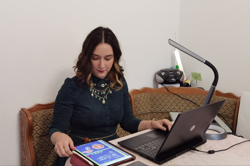 罗懿曼是今年被北京中医药大学录取的罗马尼亚籍新生。走进她租住的公寓,映入眼帘的是书架上满满的与中国有关的中外文书籍。图为在罗马尼亚布拉索夫,罗懿曼复习北京中医药大学的课程。(图片来源:新华社)