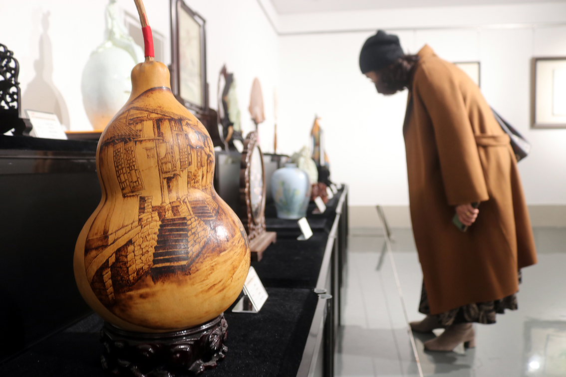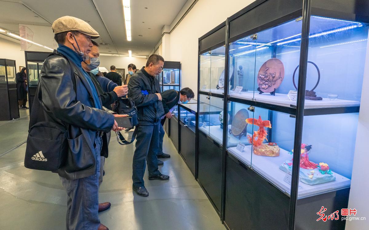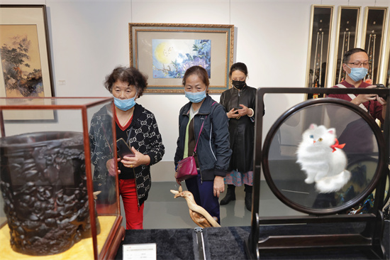 2022年11月11日,"第二十届苏州市民间艺术节民间工艺精品展"在江苏苏州美术馆开展。(图片来源:光明网)