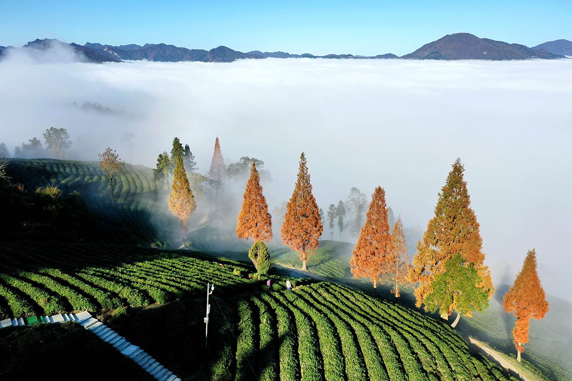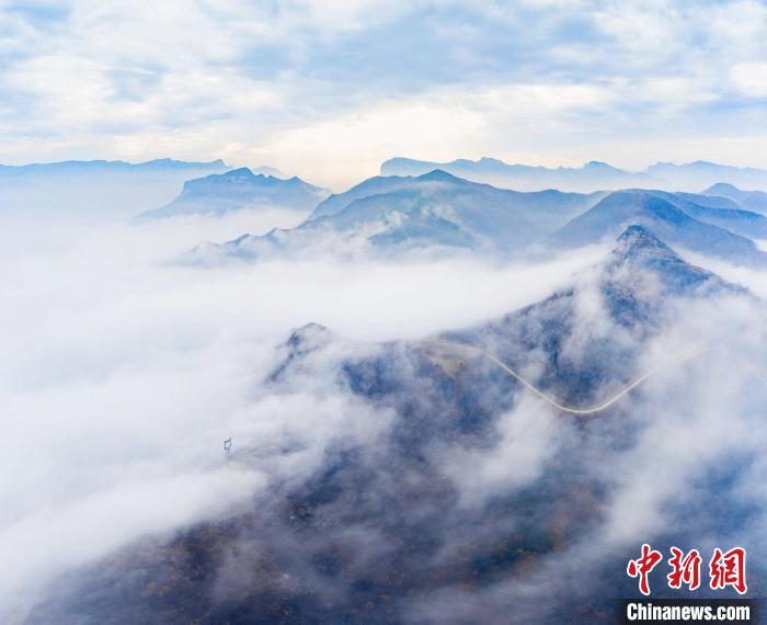 11月15日,湖北省襄阳市保康县出现云雾景观,县城周边的山峦、森林、茶园在云雾中若隐若现,美不胜收。(图片来源:本文图片除标注外均自中新社)