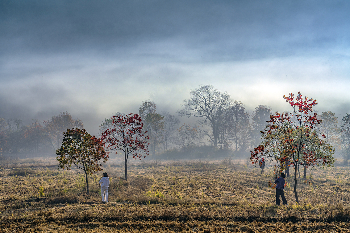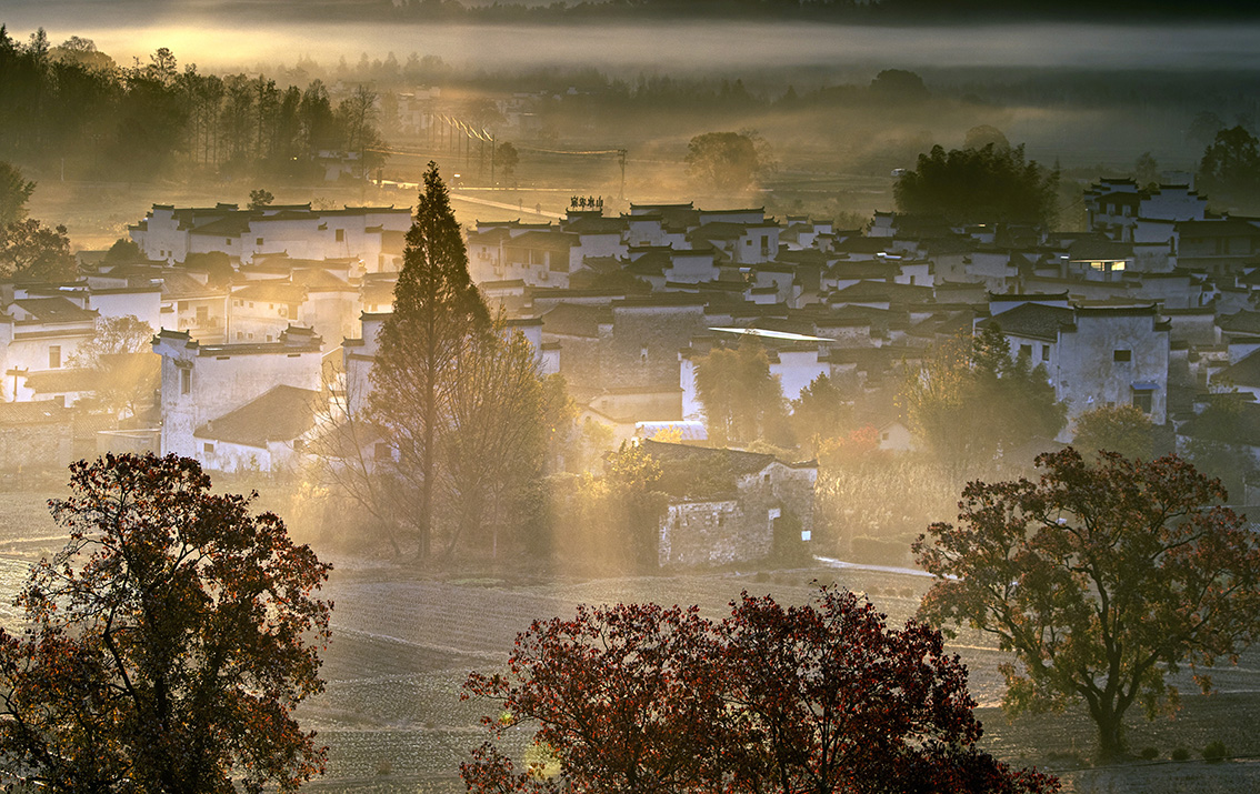 2022年11月10日,安徽省黄山市黟县卢村薄雾笼罩,徽派古民居掩映其中,美如画卷。