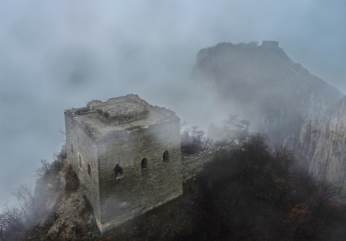 11月10日,河北省秦皇岛市海港区驻操营镇板厂峪村的长城在云雾中若隐若现,景色优美。(图片来源:新华社)