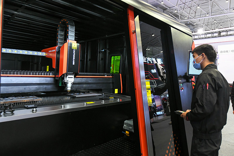 11月16日,在第十届中国(绵阳)科技城国际科技博览会上,参展商在示范操作特高功率激光切割机。(图片来源:本文图片除标注外均综编自新华社)