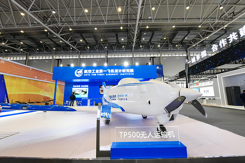 11月16日拍摄的第十届中国(绵阳)科技城国际科技博览会展出的TP500无人运输机。