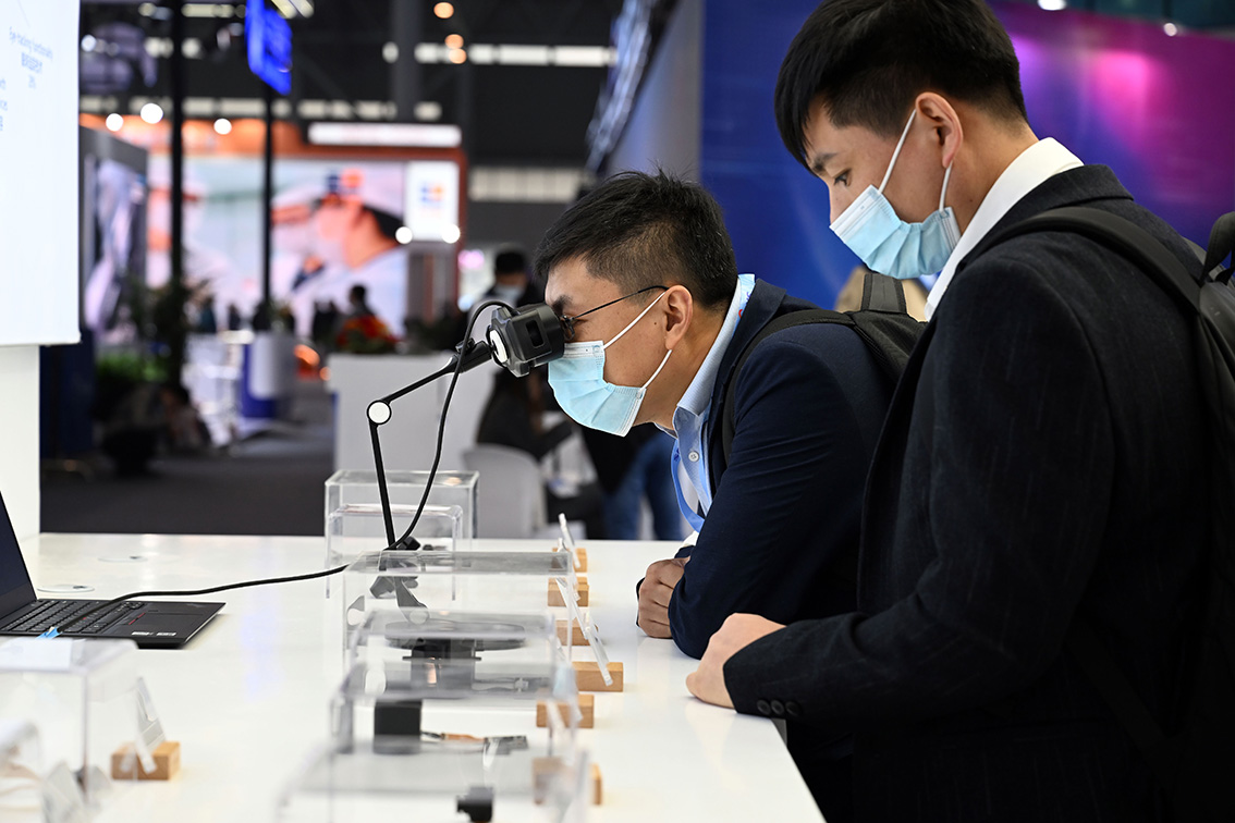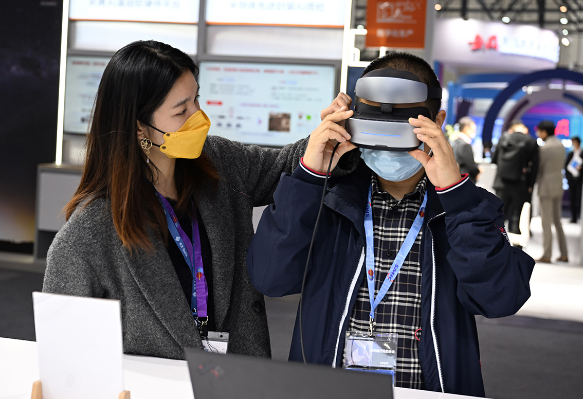 11月17日,参观者在2022世界集成电路大会上参观体验。