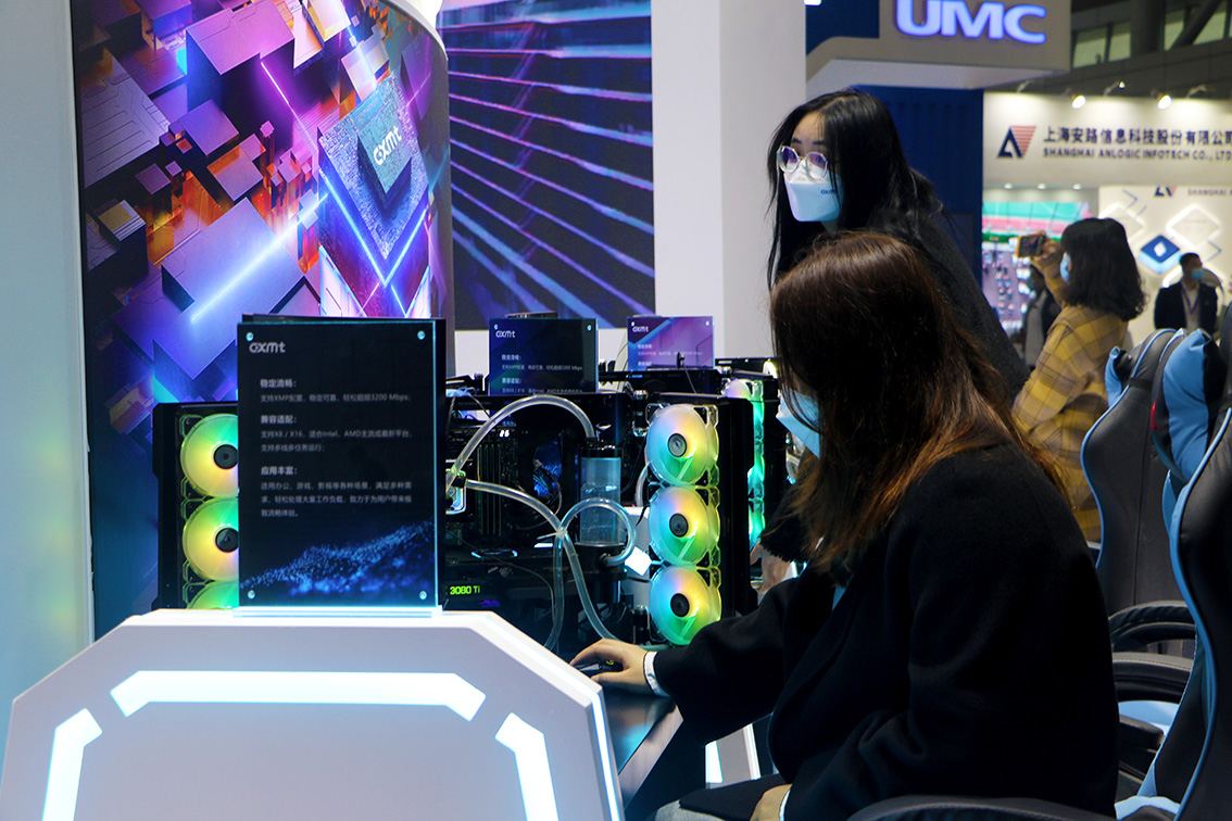 图为展出的长鑫存储DDR4内存条。(图片来源:人民网)
