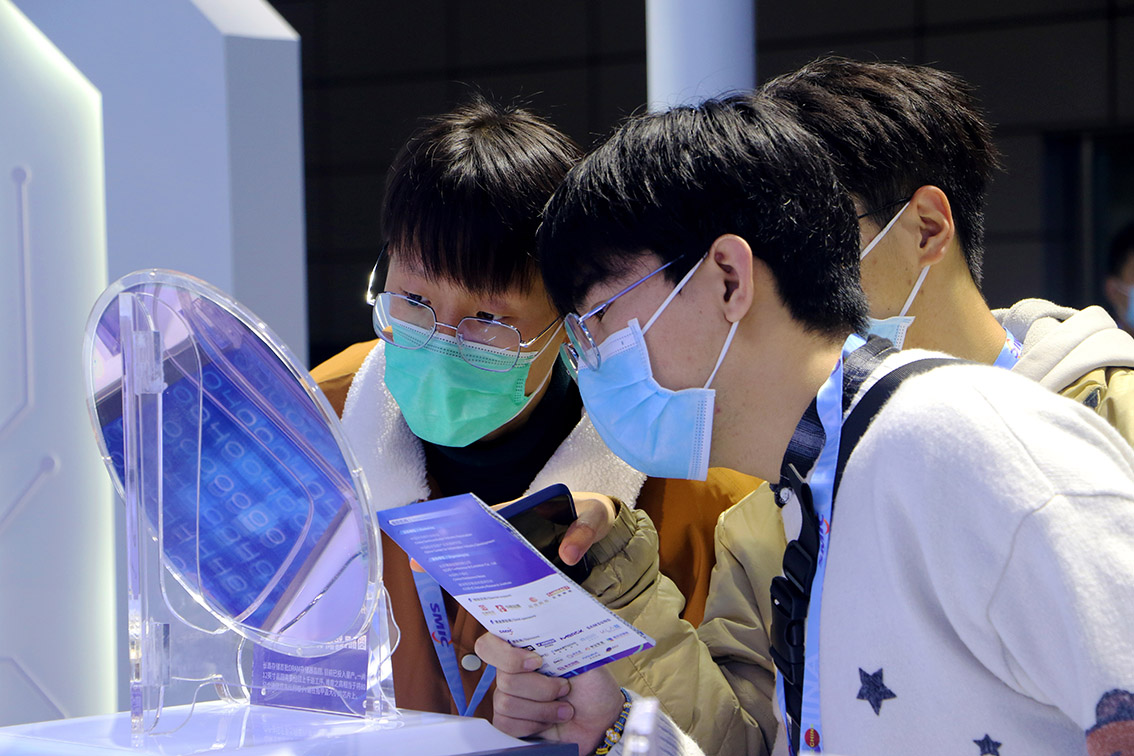 11月17日,参观者在2022世界集成电路大会上参观。(图片来源:本文图片除标注外均自新华社)