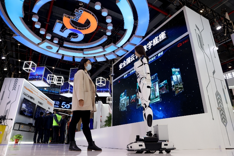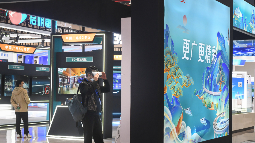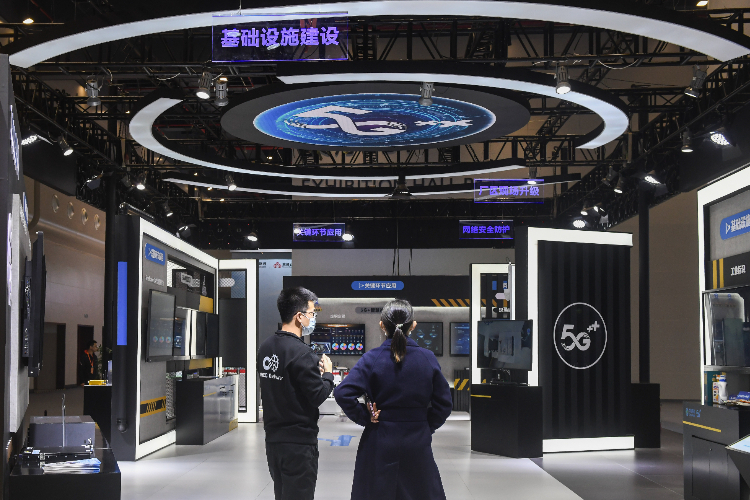 参观者在“2022中国5G+工业互联网”成果展展厅参观。(图片来源:新华社)