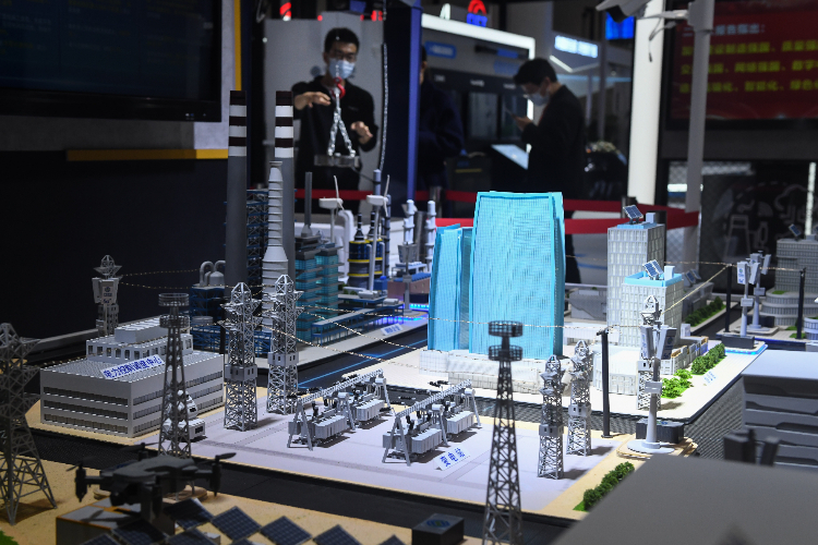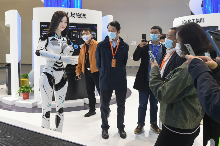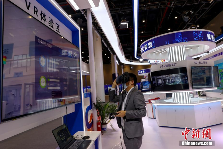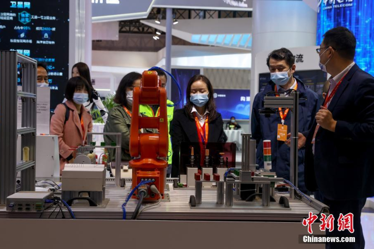 参观者观看5G智能工厂展示。(图片来源:中新网)