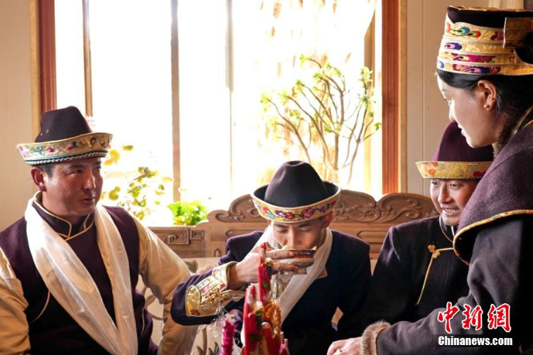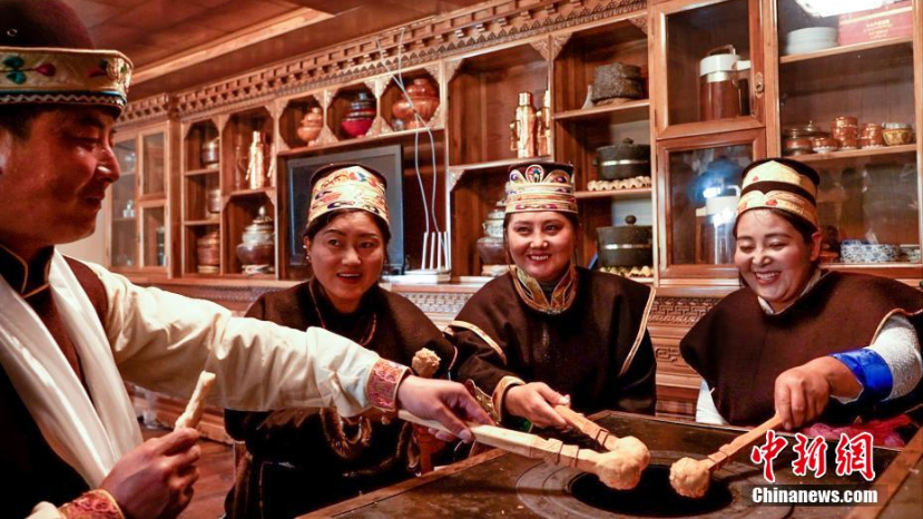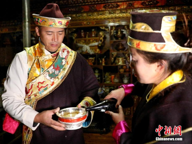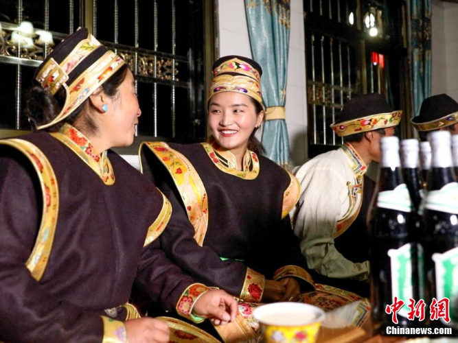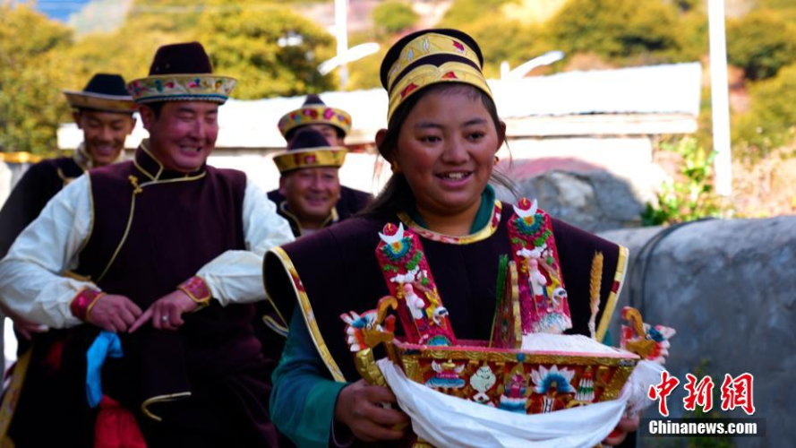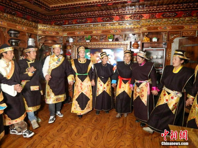 11月24日,身着节日盛装的工布姑娘唱起祝酒歌。(图片来源:中新网)