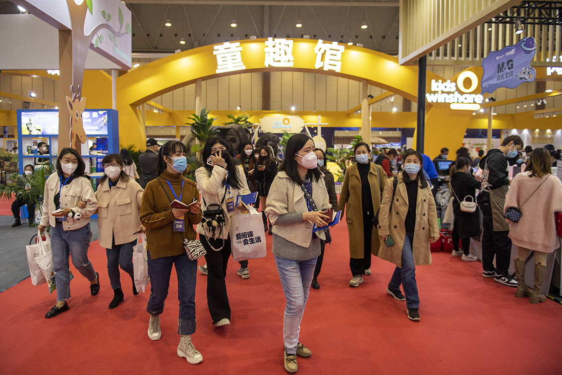图为儿童图书展区吸引市民。(图片来源:中新社)