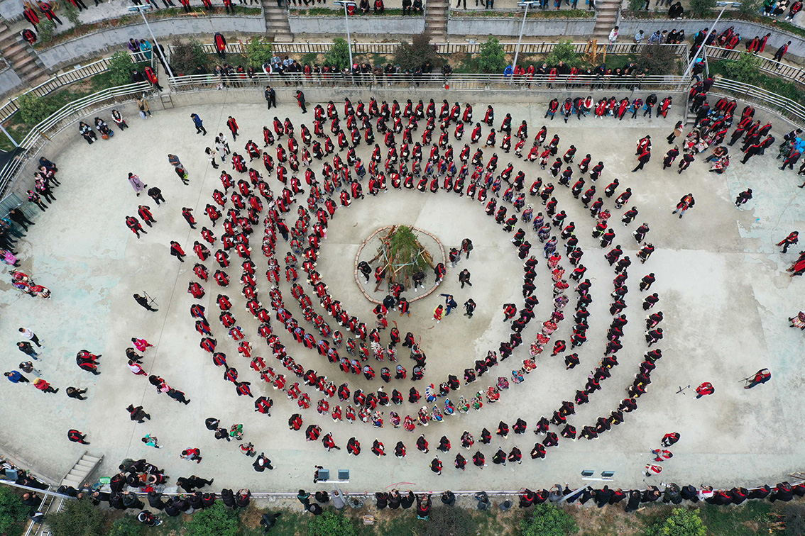 11月24日,参加侗年活动的侗族同胞在踩歌堂(无人机照片)。