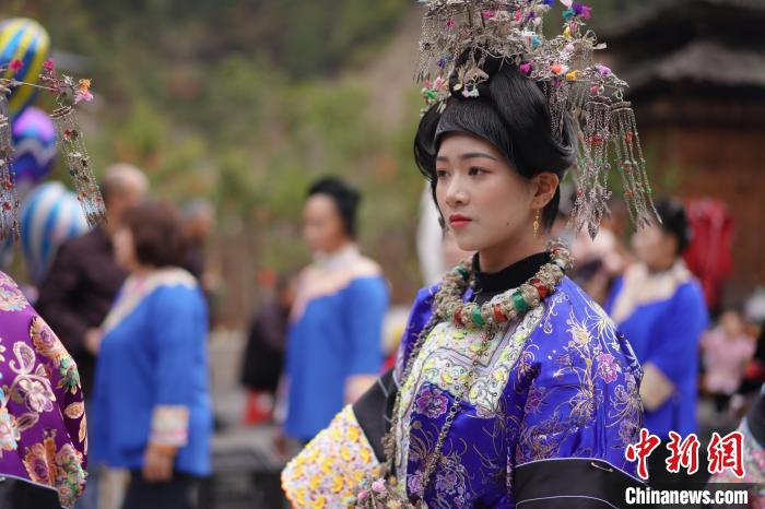 11月24日,在贵州省黔东南苗族侗族自治州榕江县乐里镇,当地群众参加侗年活动。(图片来源:中新社)