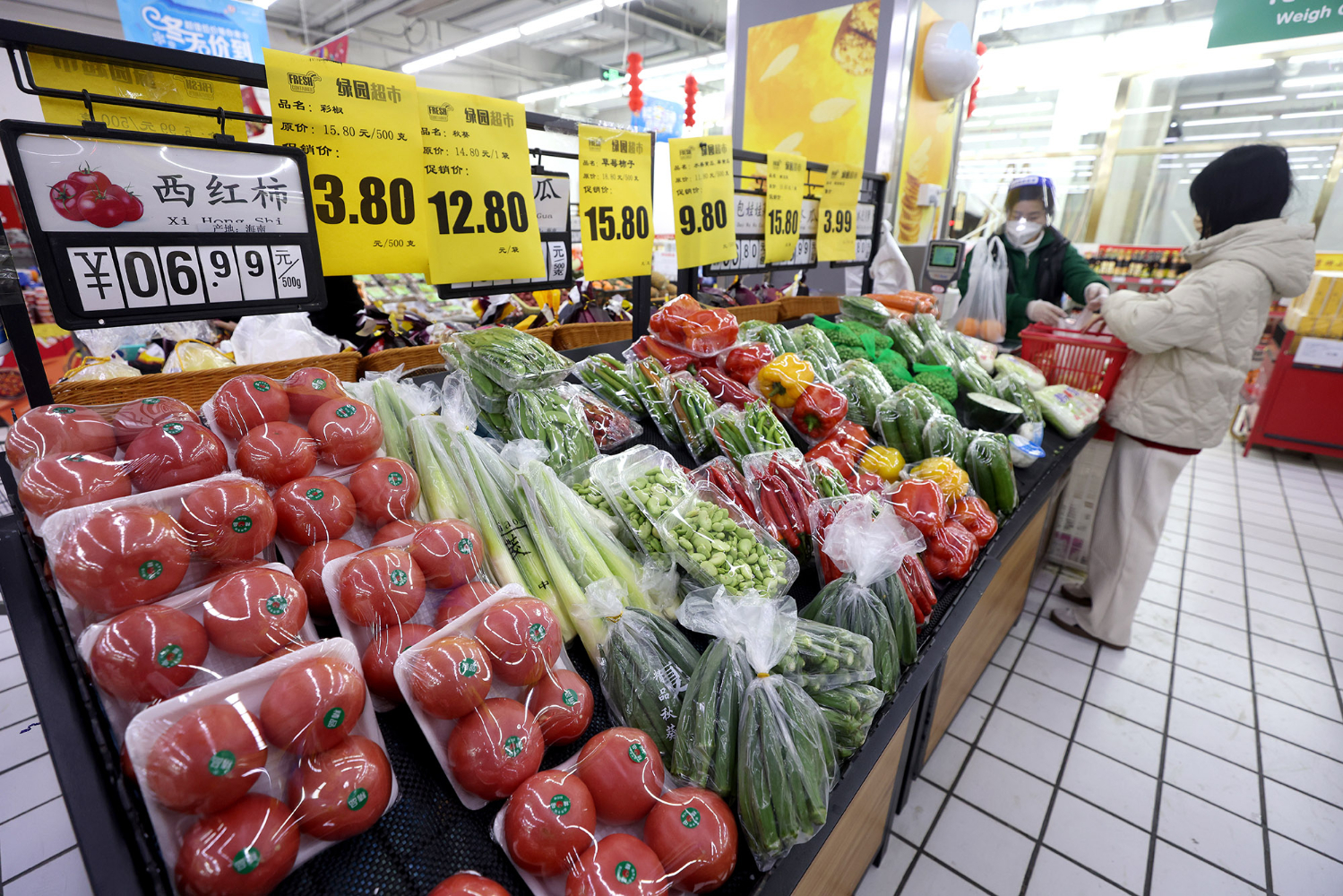 11月27日,北京市新冠肺炎疫情防控工作新闻发布会介绍,近期,北京市蔬菜等生活必需品货源充足、供应稳定。图为北京市民在超市购物。(图片来源:本文图片均综编自中新社)