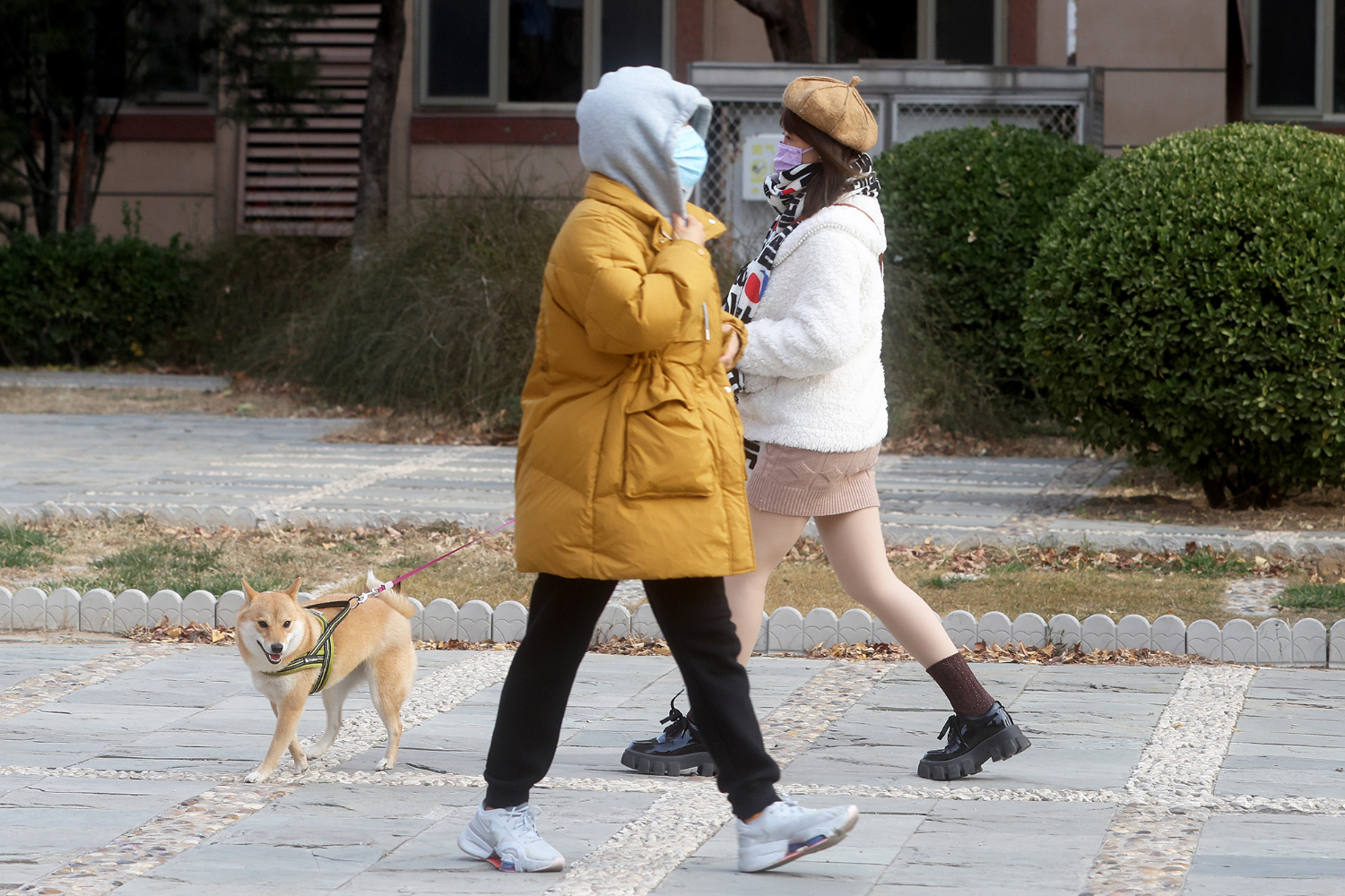 11月27日,北京市民在社区散步。