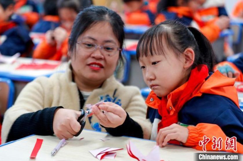 12月8日,老师教学生非遗徽州剪纸技法。(图片来源:中新网)
