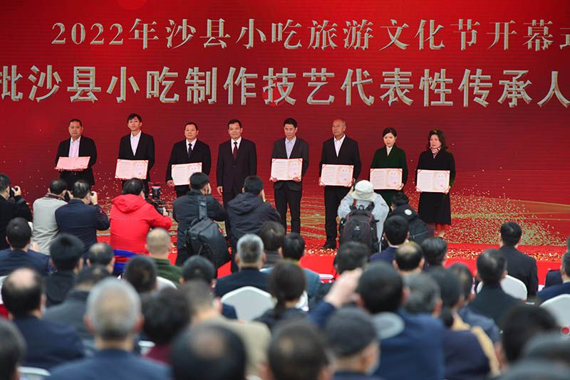活动上举行第五批沙县小吃制作技艺代表性传承人授牌仪式。(图片来源:中新社)