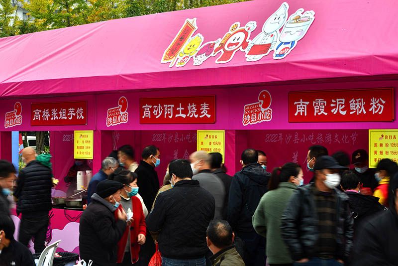 文化节上沙县小吃本土特色美食展吸引市民前来采购。(图片来源:中新社)