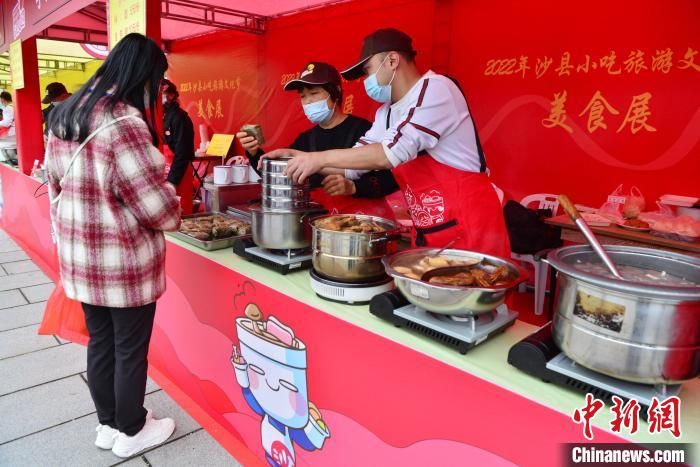 文化节上沙县小吃本土特色美食展吸引市民前来采购。(图片来源:中新网)