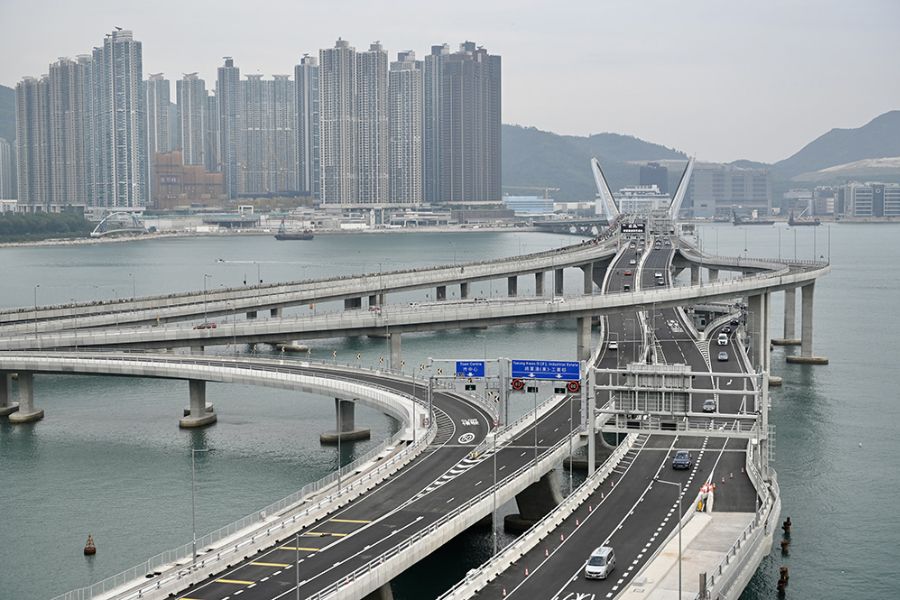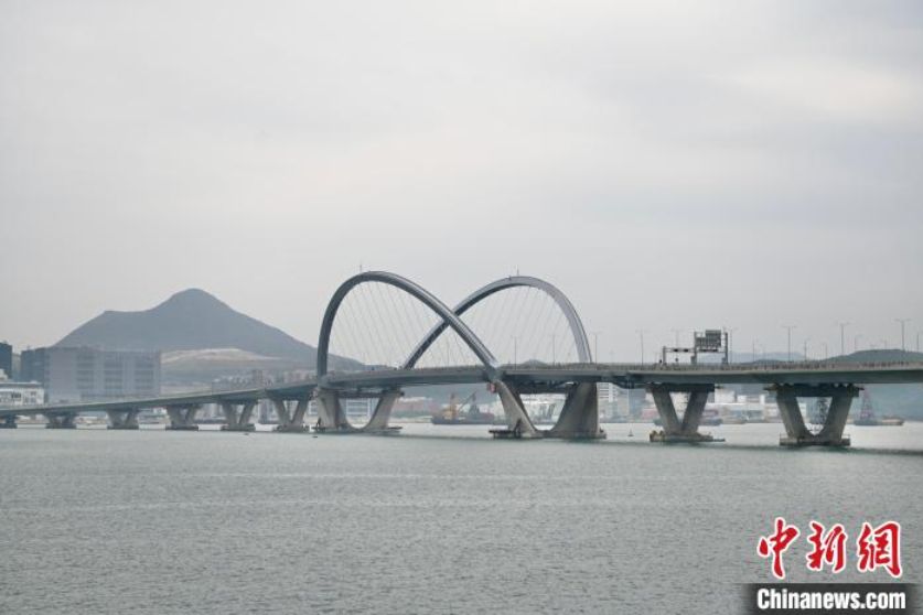 车辆于将军澳跨湾连接路上行驶。(图片来源:中新网)