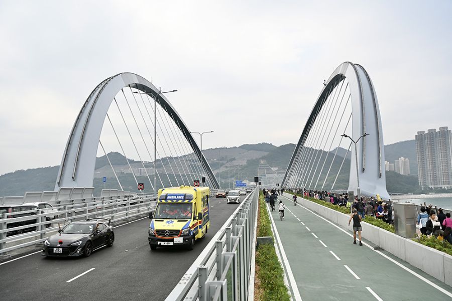 将蓝隧道及将军澳跨湾连接路正式通车。(图片来源:中新社)