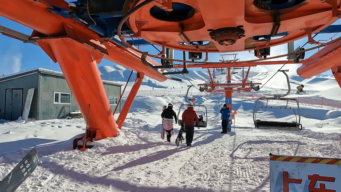 12月12日,新疆昌吉市努尔加滑雪场迎来开板“首滑”,开启2022-2023新雪季,近千名滑雪爱好者走进滑雪场,体验冰雪运动乐趣。(图片来源:中国日报网)
