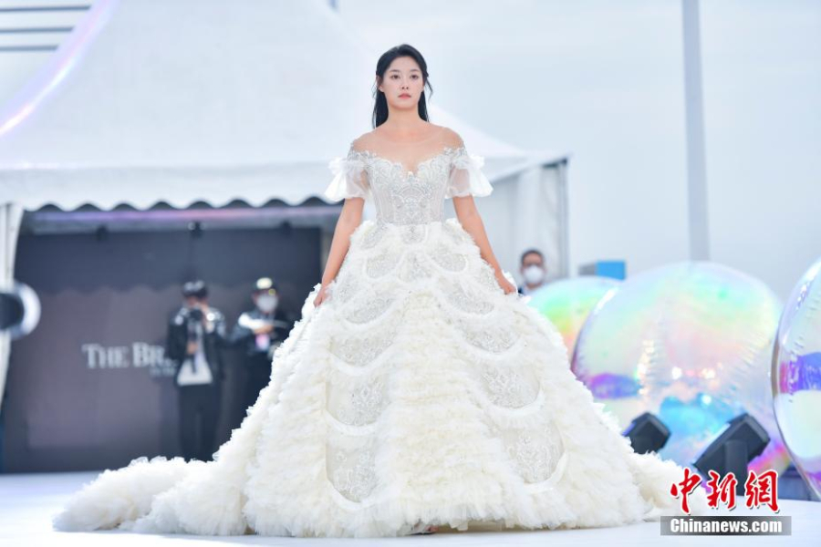 模特展示精美婚纱。(图片来源:中新网)