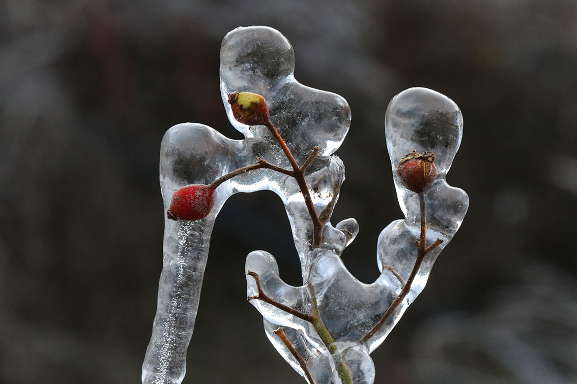 2022年12月18日,受强冷空气影响,安徽合肥庐阳区各种植物结了冰花。(图片来源:中新社)