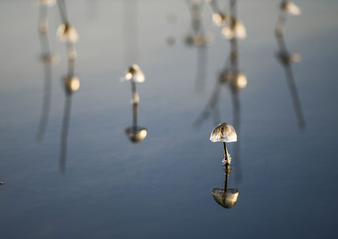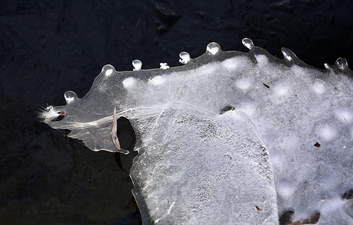 12月14日在天津市蓟州区于桥水库拍摄的冰花。