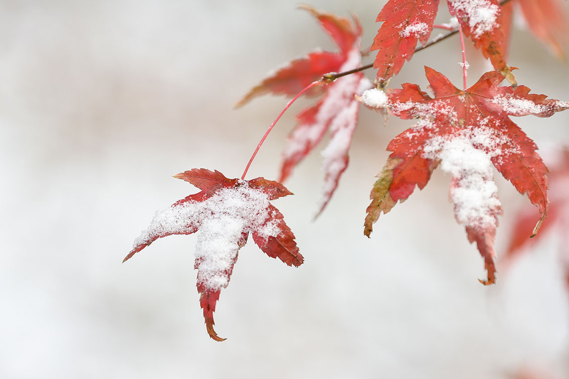 12月17日,在江苏省南京市紫金山,雪落在红枫上。