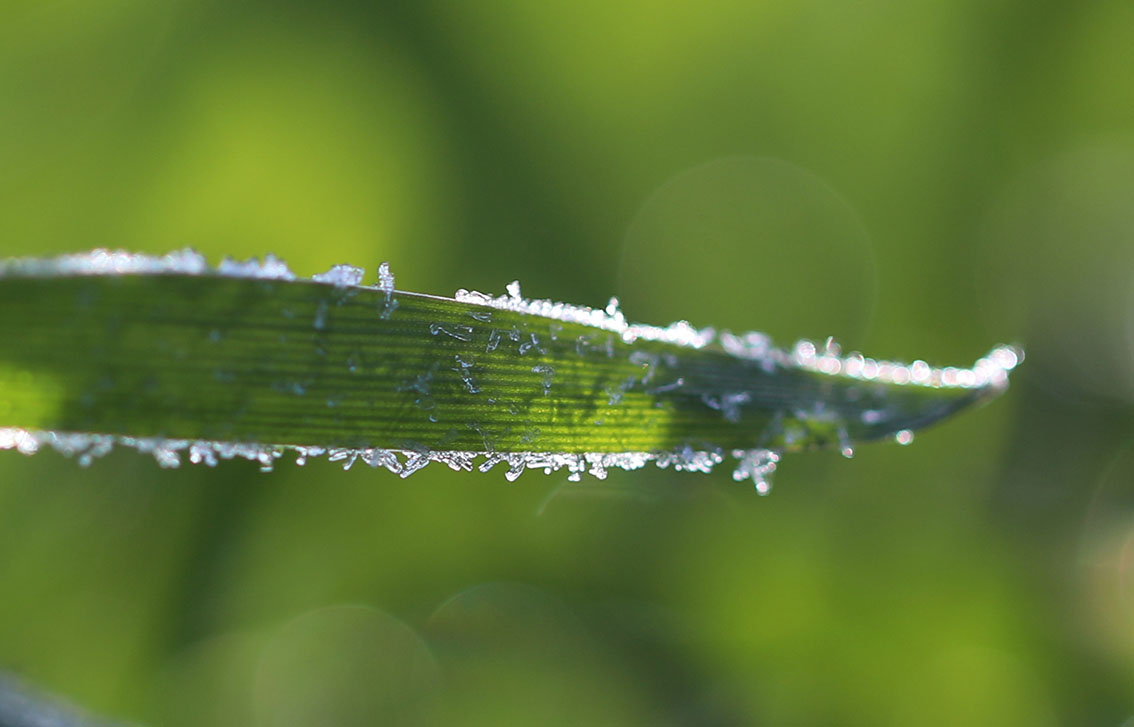 12月18日,山东省邹平市一片麦田里的麦苗结了冰花。
