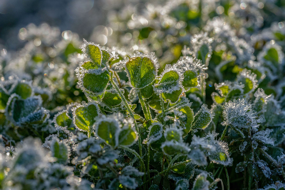 2022年12月18日,安徽省合肥市庐阳区大杨镇岗西村结上冰花的植物。(图片来源:中新社)