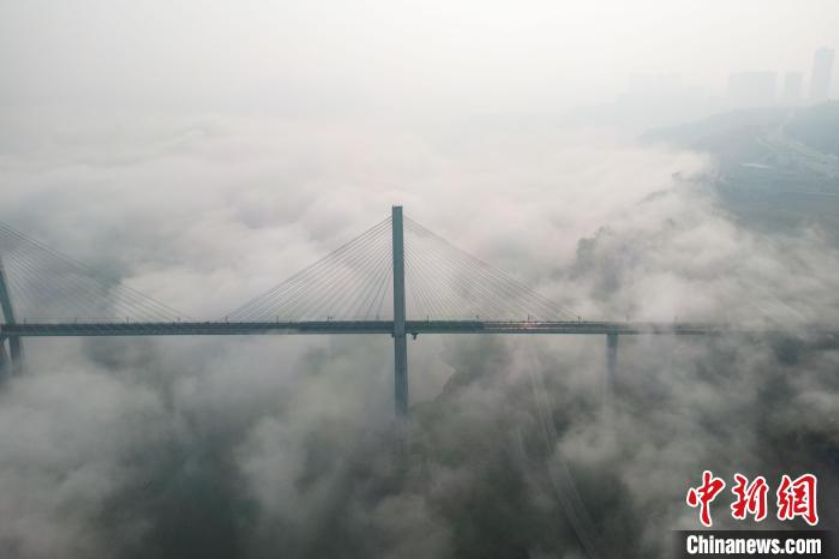 大雾弥漫重庆蔡家大桥 “云海列车”美景再现