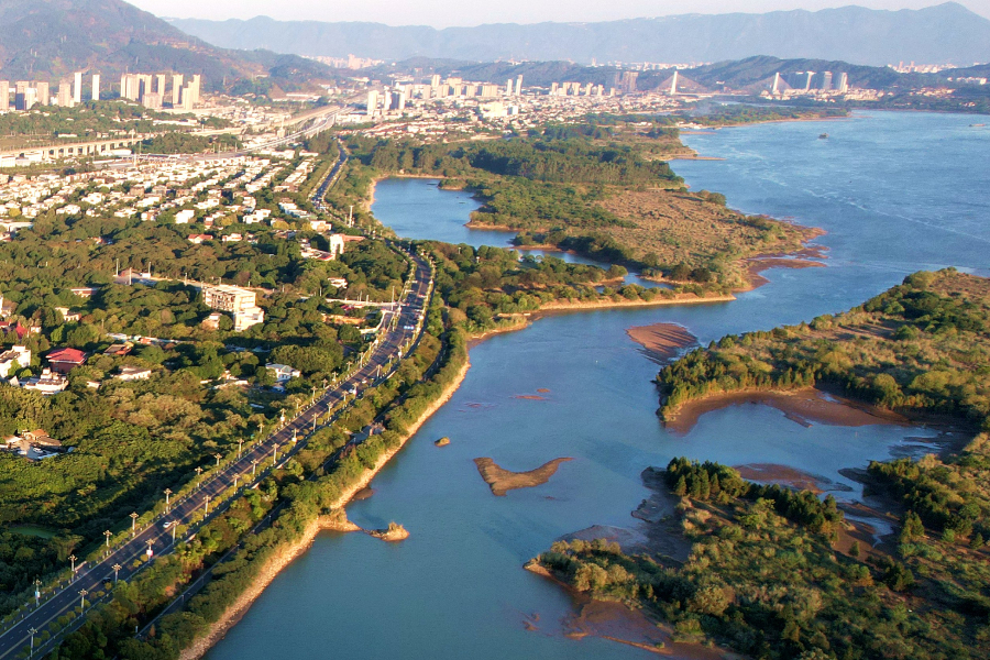 美景一览无余 航拍冬日里的福州闽江湿地公园