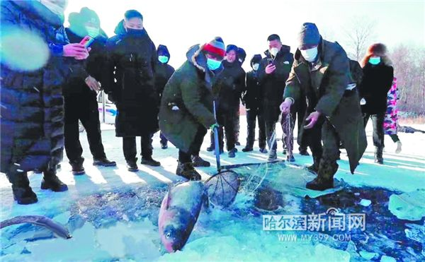 在哈尔滨方正县得莫利镇吉兴村吉兴水库,“乡村冬捕节”的热闹场面拉开了今冬冬捕的帷幕。八方游客因冬捕而来,齐聚吉兴水库赏水库美景,观冬捕盛况。(图片来源:哈尔滨新闻网)