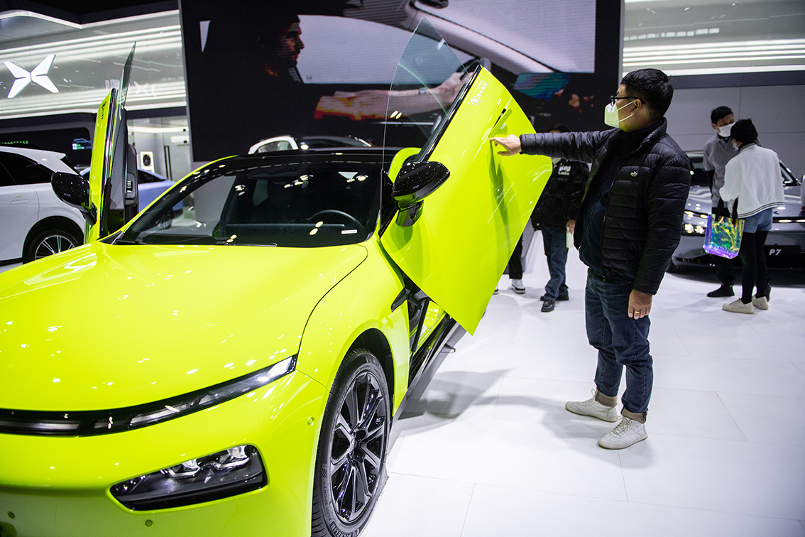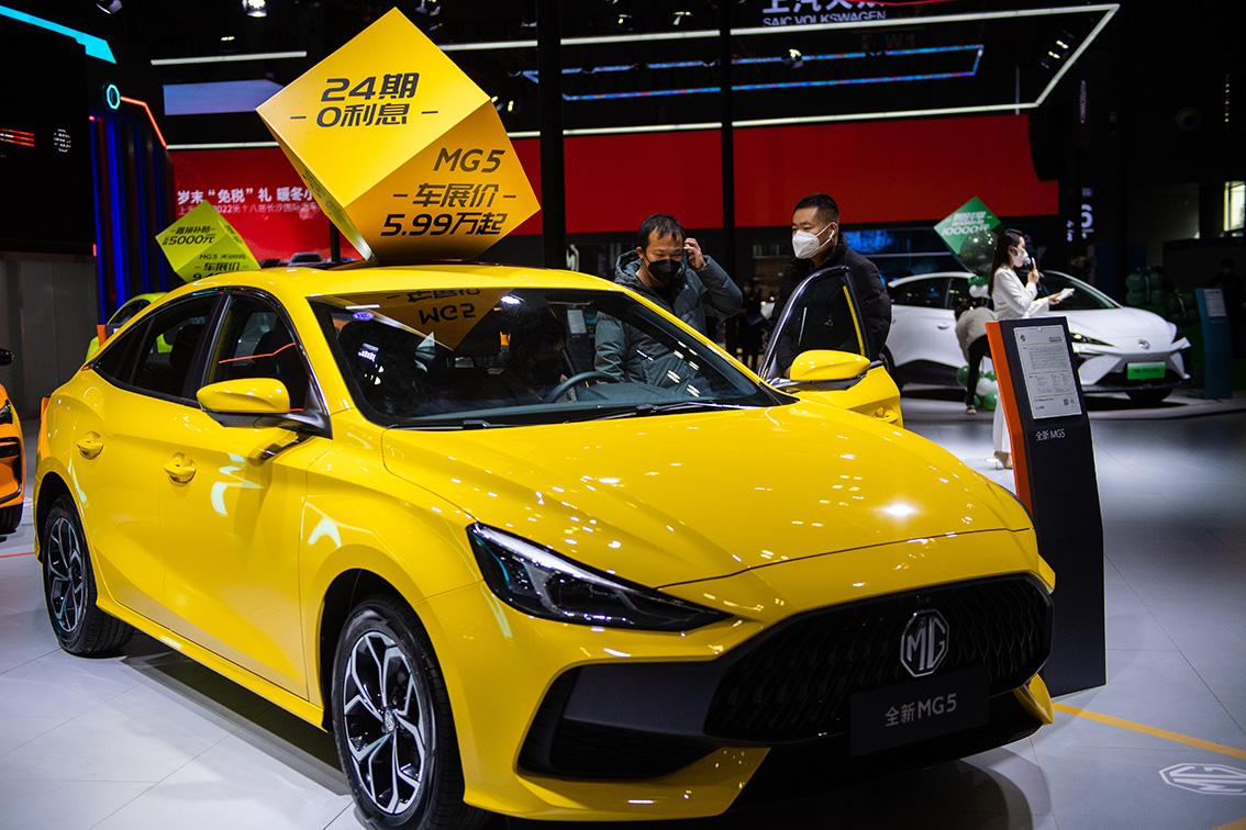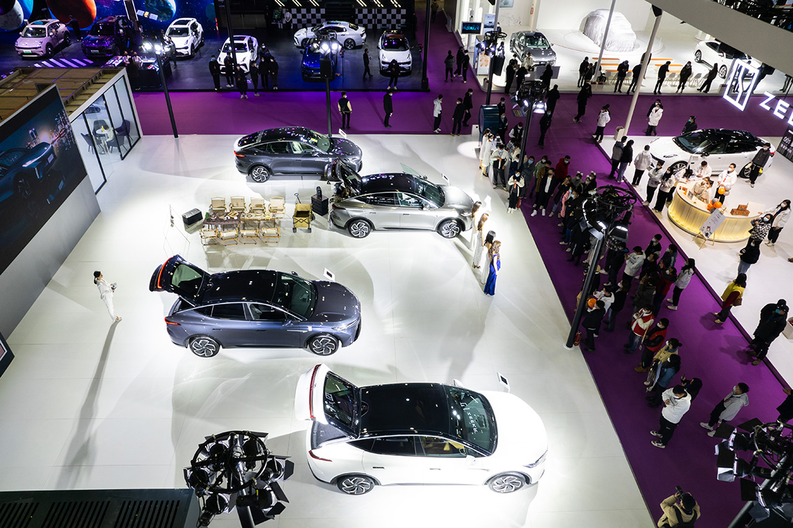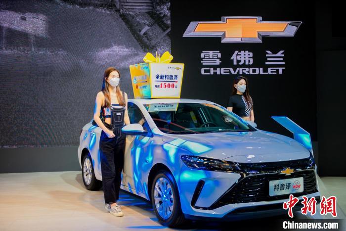车企展台前展示的新车。(图片来源:人民网)