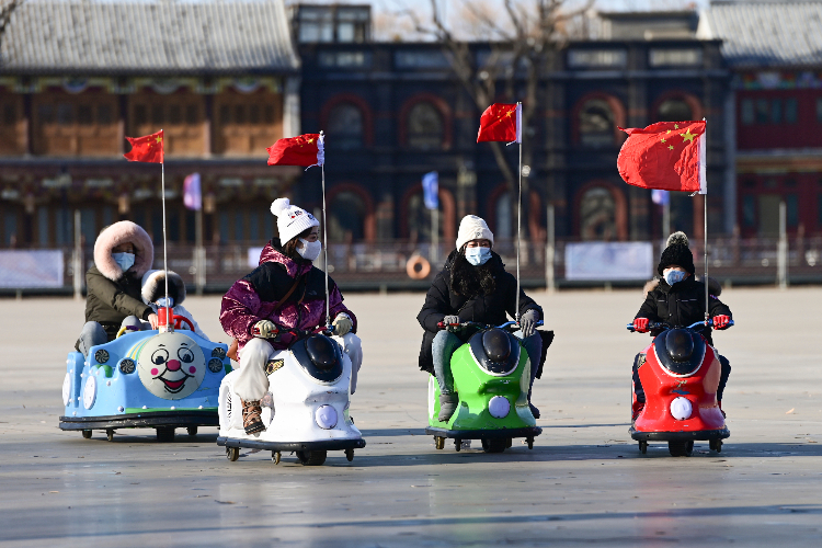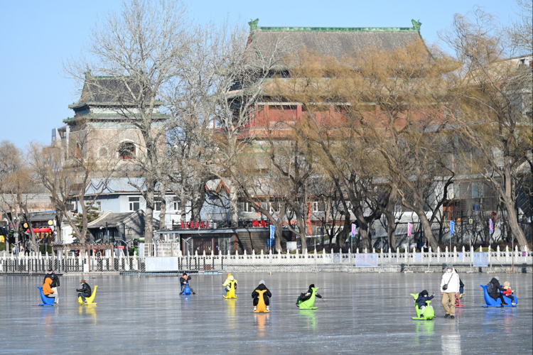 市民在北京什刹海冰场滑冰。(图片来源:中新网)