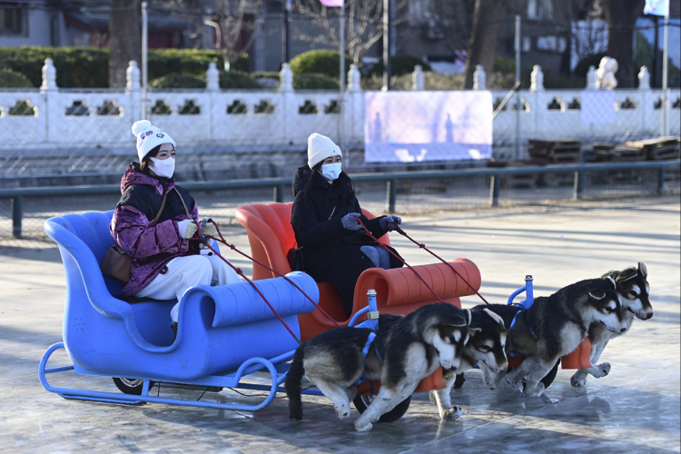 12月27日,民众在北京什刹海冰场滑冰。(图片来源:中新社)