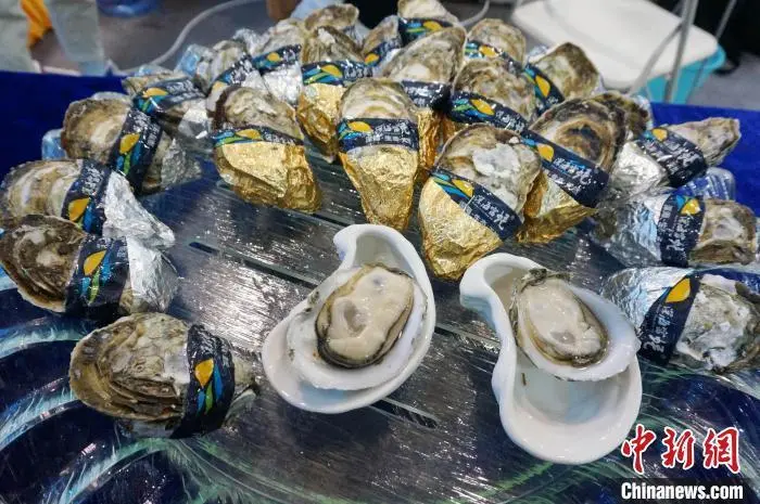 12月29日,农交会展馆内展示的海产品生蚝。(图片来源:中新网)