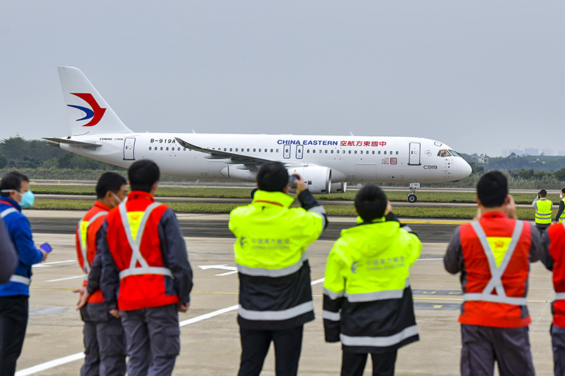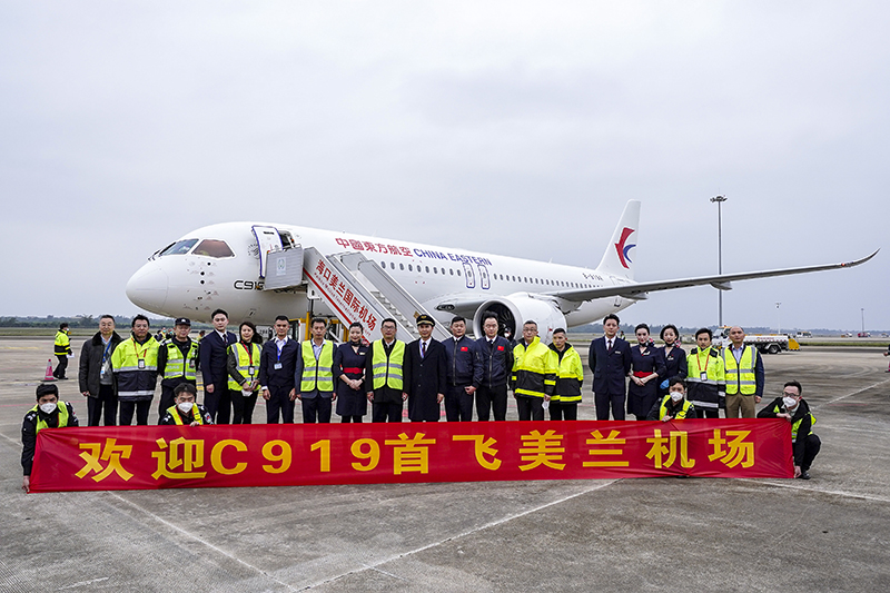 中国国产大型客机C919飞抵海口美兰国际机场 开展验证飞行