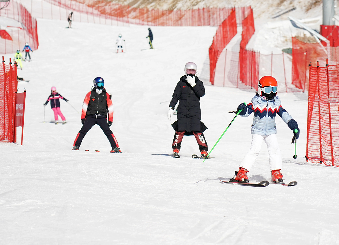 图为冰雪运动爱好者在邯郸市永年区佛山滑雪场体验滑雪乐趣。(图片来源:中新网)