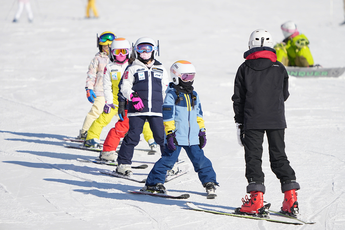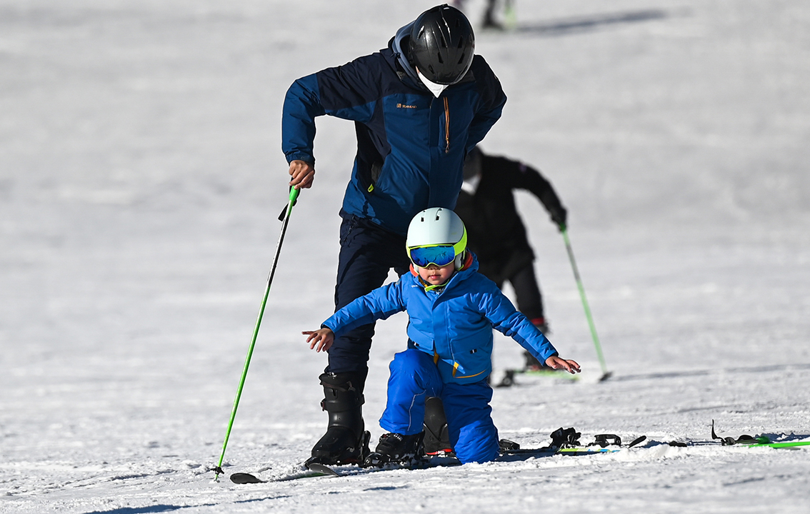 1月2日,在北京市延庆区石京龙滑雪场,小朋友在练习滑雪。