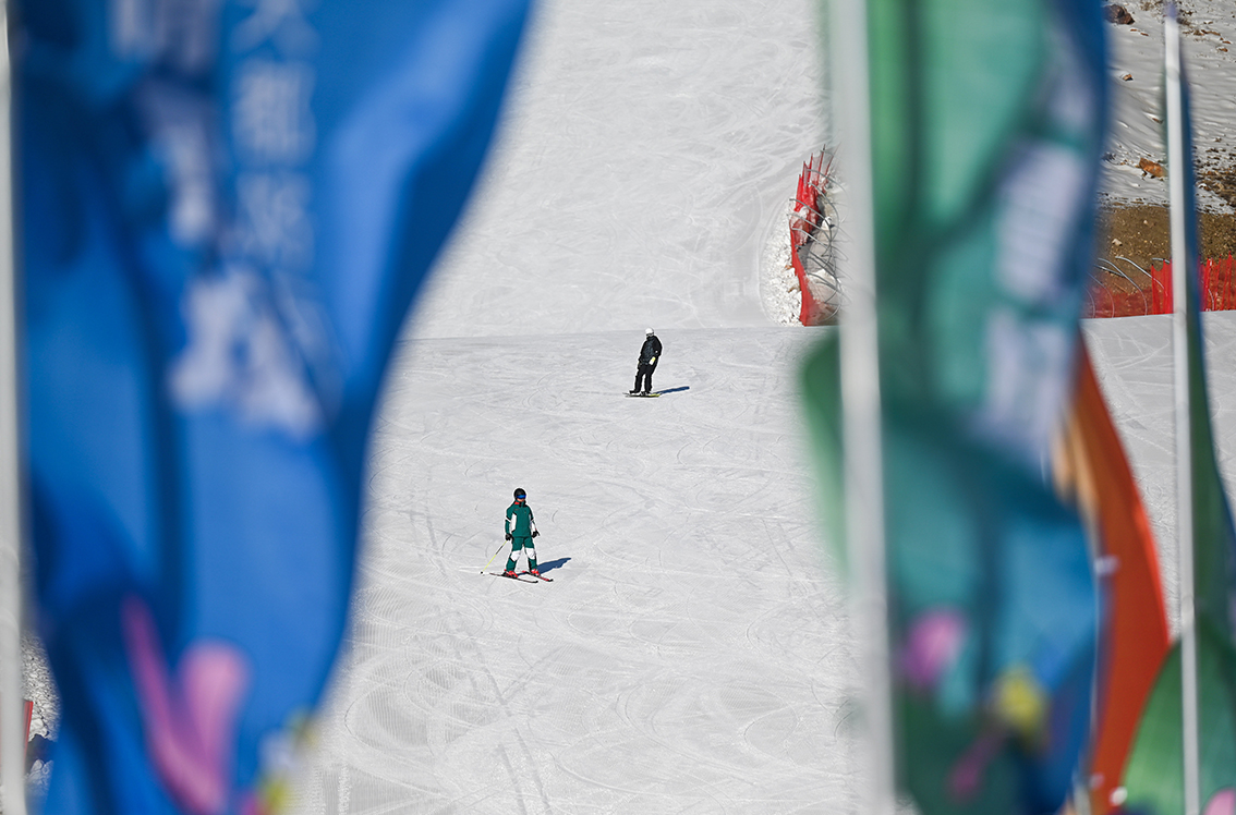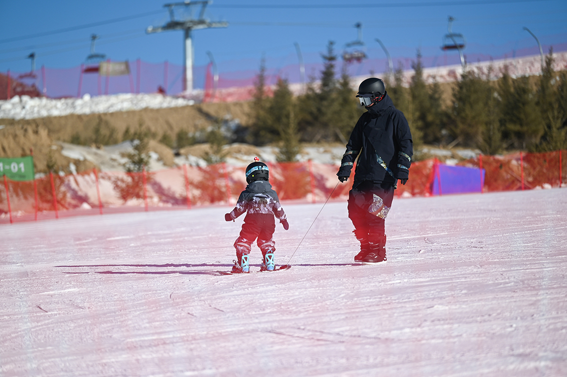 1月2日,滑雪爱好者在呼和浩特市马鬃山滑雪场滑雪。