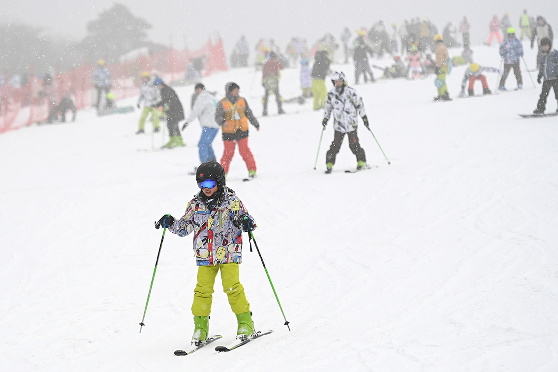 1月1日,不少游客来到江西省宜春市明月山滑雪场,体验户外滑雪的乐趣。(图片来源:中新社)