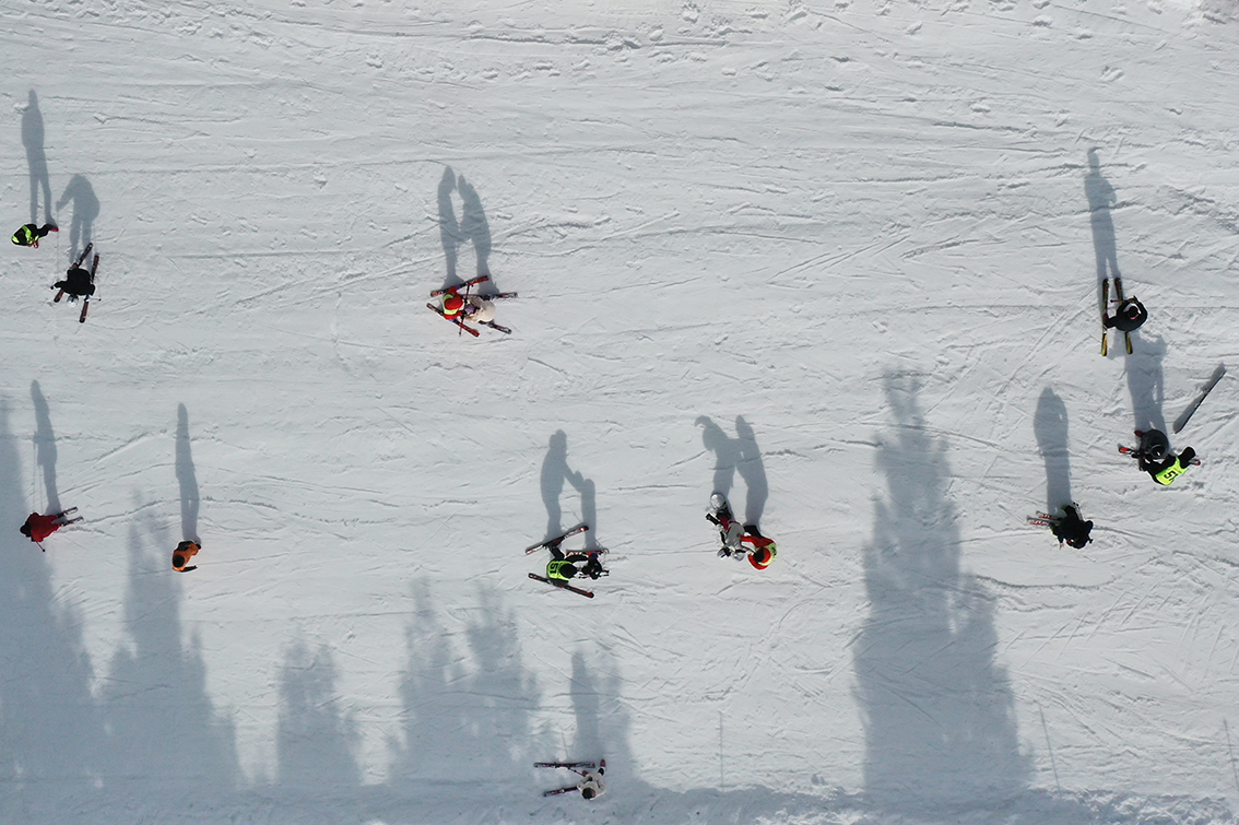 1月2日,滑雪爱好者们在内蒙古呼和浩特市马鬃山滑雪场上享受冰雪运动带来的快乐。