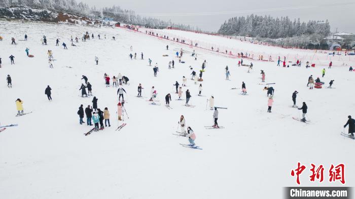 元旦期间,重庆武隆仙女山景区户外运动中心吸引了众多游客前去滑雪。(图片来源:人民网)