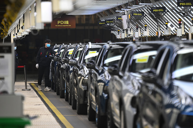 1月5日,工人在领克汽车浙江余姚工厂总装车间进行下线前的检查工序。(图片来源:新华社)