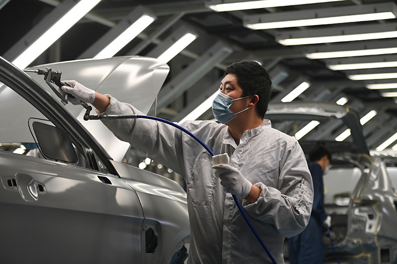 1月5日,工人在领克汽车浙江余姚工厂涂装车间作业。(图片来源:新华社)