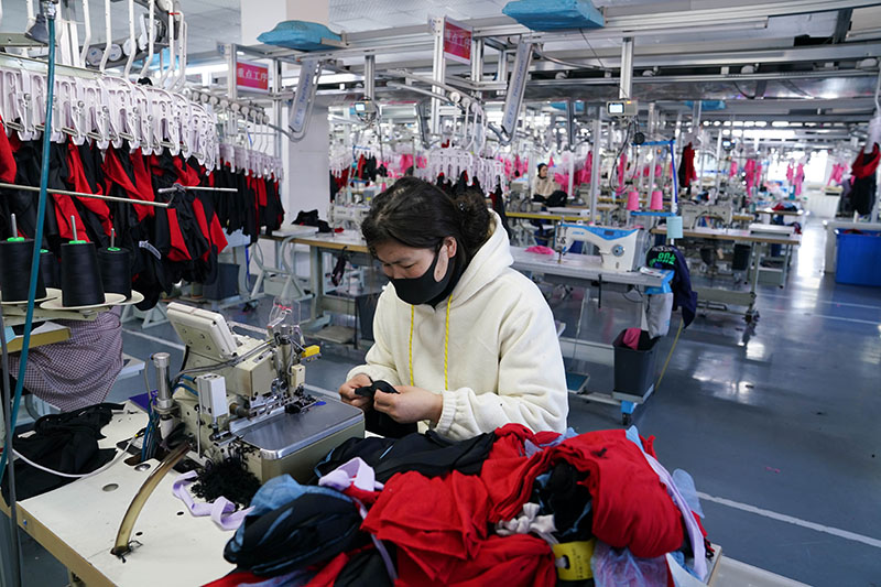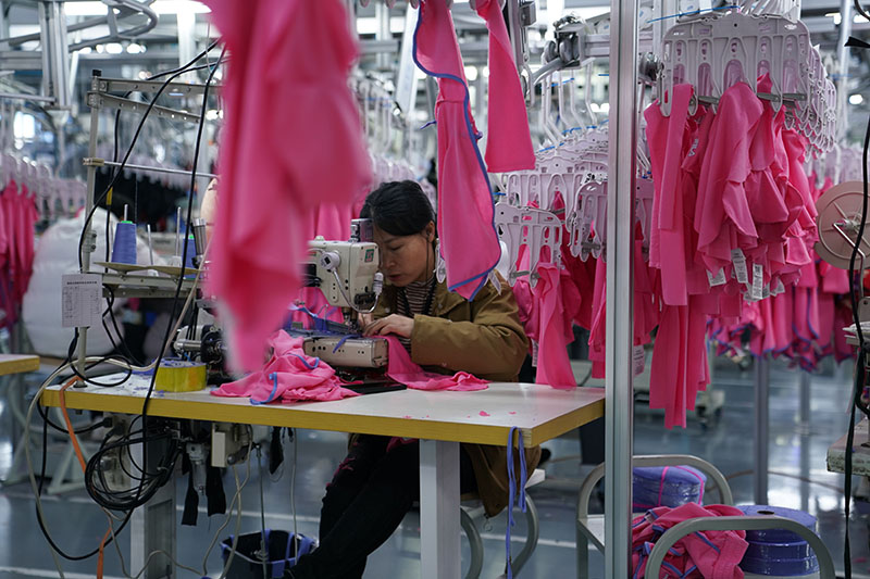 1月4日,工人在位于南昌市青山湖区的南昌市众拓制衣有限公司车间内忙碌。(图片来源:新华社)